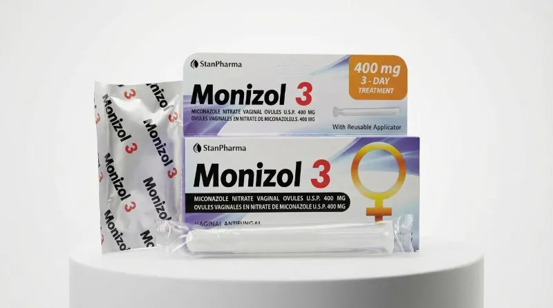 Monizol 3, containing miconazole 400 mg in vaginal ovule form, is indicated for the treatment of vulvovaginal candidiasis (vaginal yeast infections) caused by susceptible Candida species. It helps to relieve symptoms such as itching, burning, irritation, and abnormal vaginal discharge by inhibiting fungal growth and restoring the normal vaginal environment.